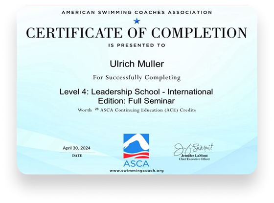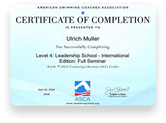 Awarded to those who embody the Olympic spirit, this certificate recognizes outstanding performance, perseverance, and commitment to swimming at the highest level. It is a symbol of hard work, resilience, and pride.